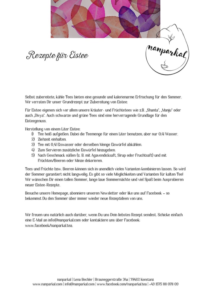So wird der Sommer garantiert nicht langweilig. Es gibt so viele Möglichkeiten und Varianten für Eistee! Wir wünschen Dir einen tollen Sommer, lange laue Sommernächte und viel Spaß beim Ausprobieren neuer Eistee-Rezepte.